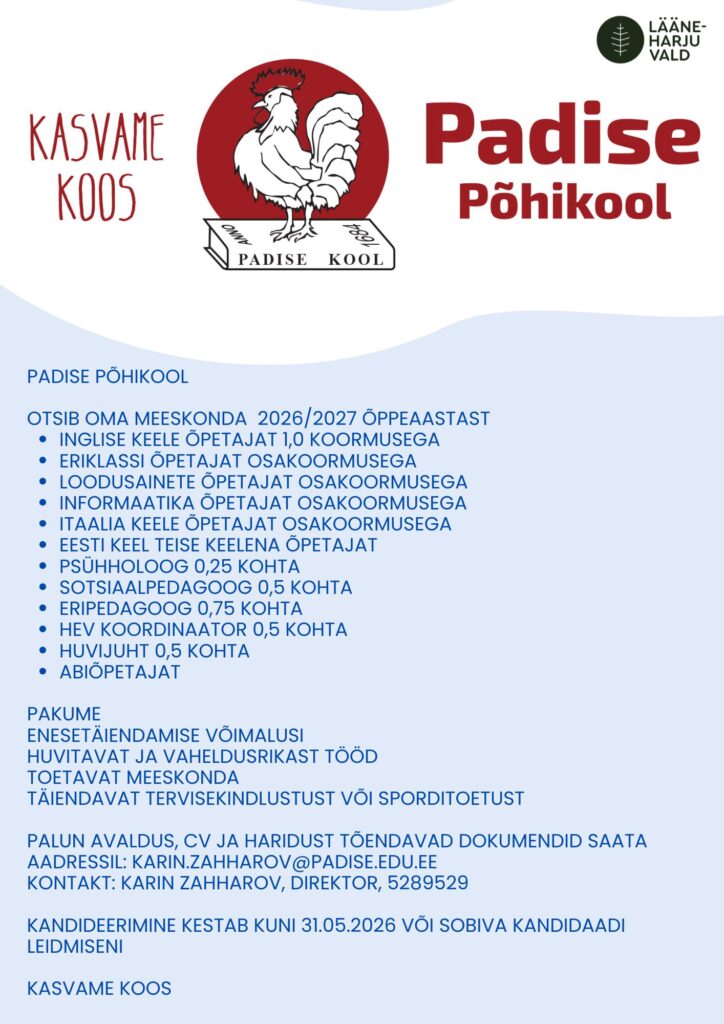 Otsime meie kooliperre uuest õppeaastast ägedaid kolleege! Kui Sinu süda lööb hariduse rütmis või Sa tunned kedagi, kes otsib uusi väljakutseid ja toetavat tiimi, siis ootame Sind.